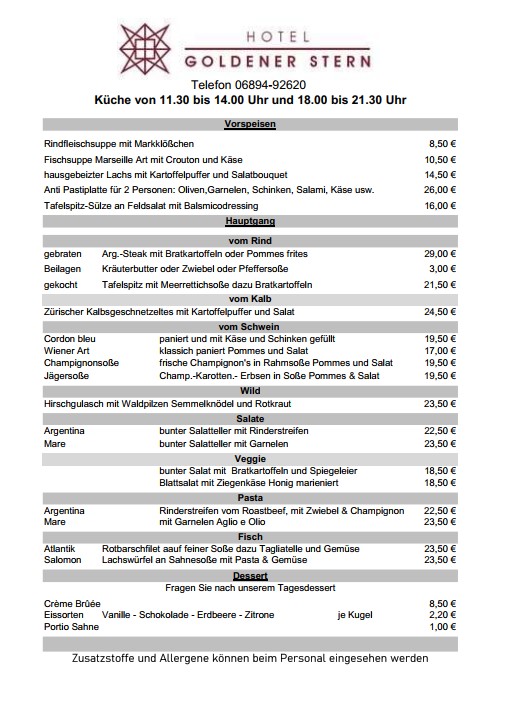 • Mittagskarte